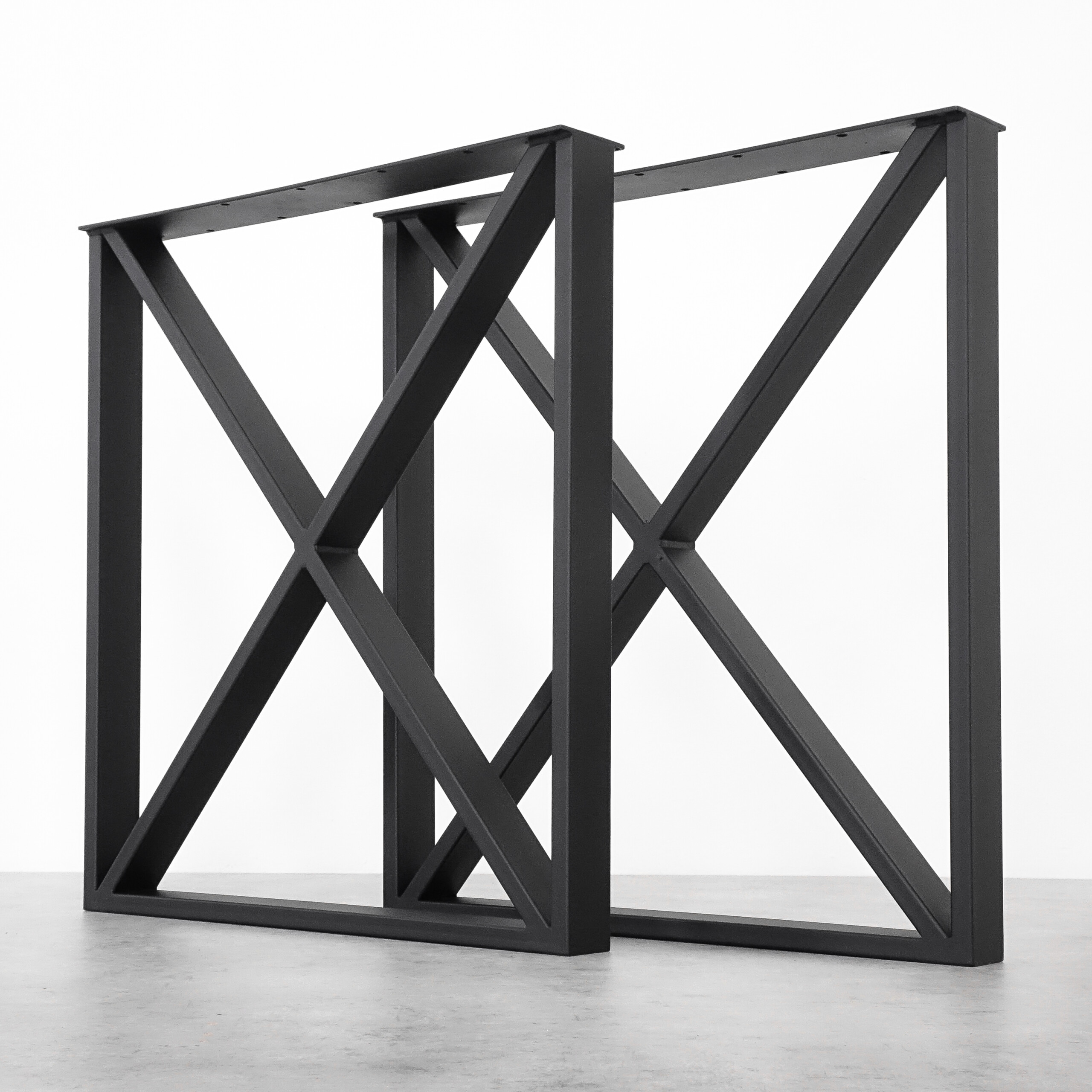 Quadro X B nelinurksed terasest mööblijalad (komplektis 2 jalga) sobivad erinvealt Quadro X jalgadest ka väiksemate lauaplaatide toetamiseks olles veidi kitsamad, õhulisemad ja kergemad. Tugev konstruktsioon kannab hästi ka raskeid puitplaate või kivipaneele.
